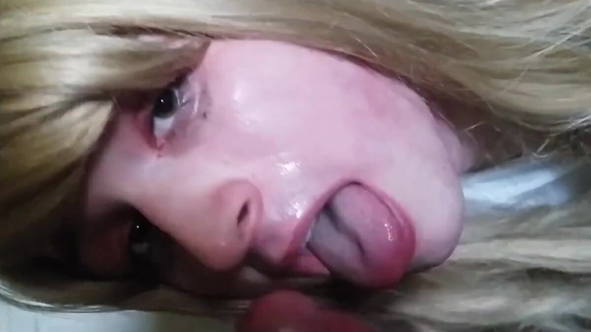 Blonde Crossdresser Swallows Huge Load from Older Man