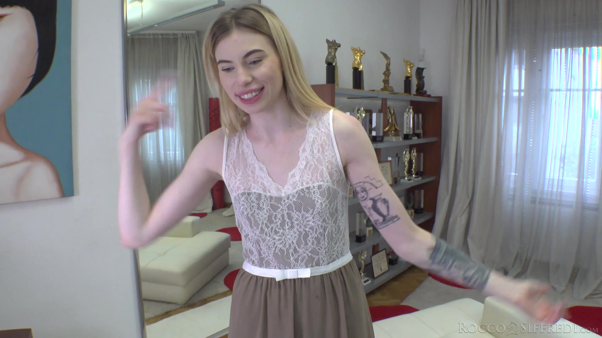 «Rocci sodomises cute inked blonde for her casting»